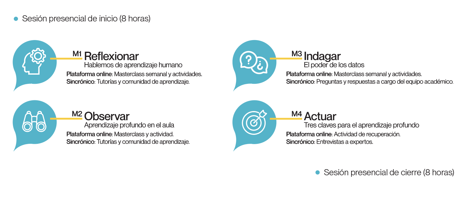 Este diplomado tiene como objetivo capacitar a equipos de líderes escolares en las habilidades y herramientas que transformarán el núcleo pedagógico en sus escuelas, promoviendo un entorno educativo desafiante y preparado para el futuro.
